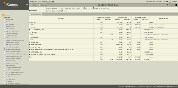 Sistēmas Ramus Accountant atskaite "Apgrozījumi" ir daudzfunkcionāls rīks, kas ļauj analizēt grāmatvedības datus dažādos griezumos. Atskaite nodrošina gan klasisko kontu apgrozījumu pārskatu, gan detalizētu analītiku pa partneriem, projektiem, darbiniekiem un citiem dimensiju veidiem.