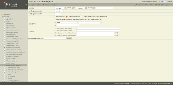 • Viss apgrozījums – iekļauj visus grāmatojumus, kas atbilst periodam.