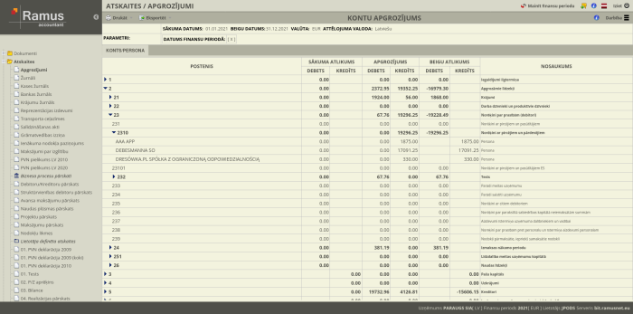 • Pamatvalūtā – pārrēķina visus datus uz uzņēmuma bāzes valūtu.