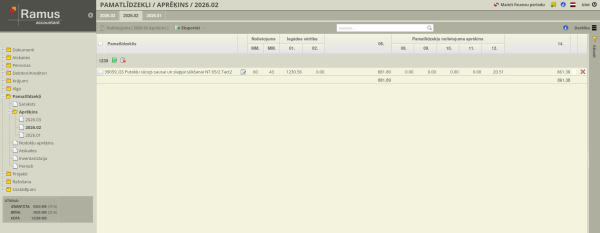 - Pamatlīdzekļu kustības pārskats (iegāde, nolietojums, izslēgšana).