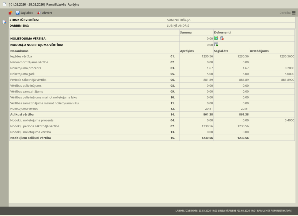 Nolietojuma aprēķins tiek veikts masveidā visiem pamatlīdzekļiem par izvēlēto periodu.